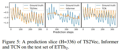 TS2Vec에서는 마지막 시점 표현 \(r_t\)을 입력으로 받아 선형 회귀 모델을 학습하여 미래 값을 예측