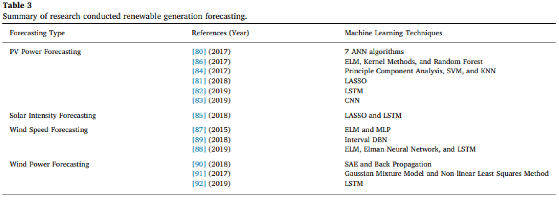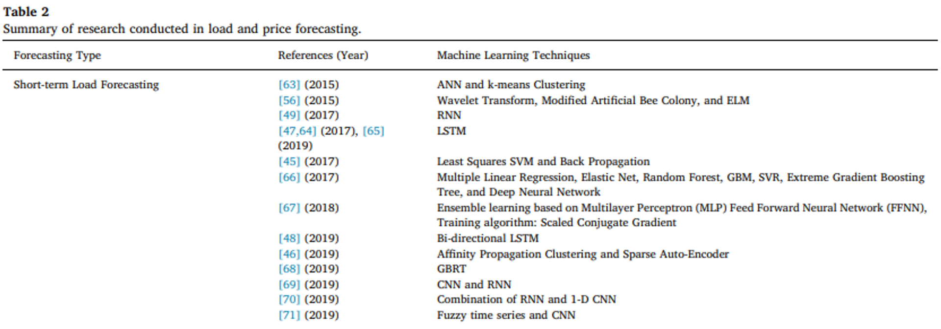 Electric Load Forecasting : 상대적으로 성숙한 분야. 머신러닝 기법이 중요한 역할을 하였다. 기상 데이터의 활용 및 다양한 지역의 계층적 예측을 활용하였다. 게다가, 기계학습 기반 단기 예측은 수요를 충족시키고 간헐적이고 재생 가능한 분산 발전 예측에도 크게 기여하였다.