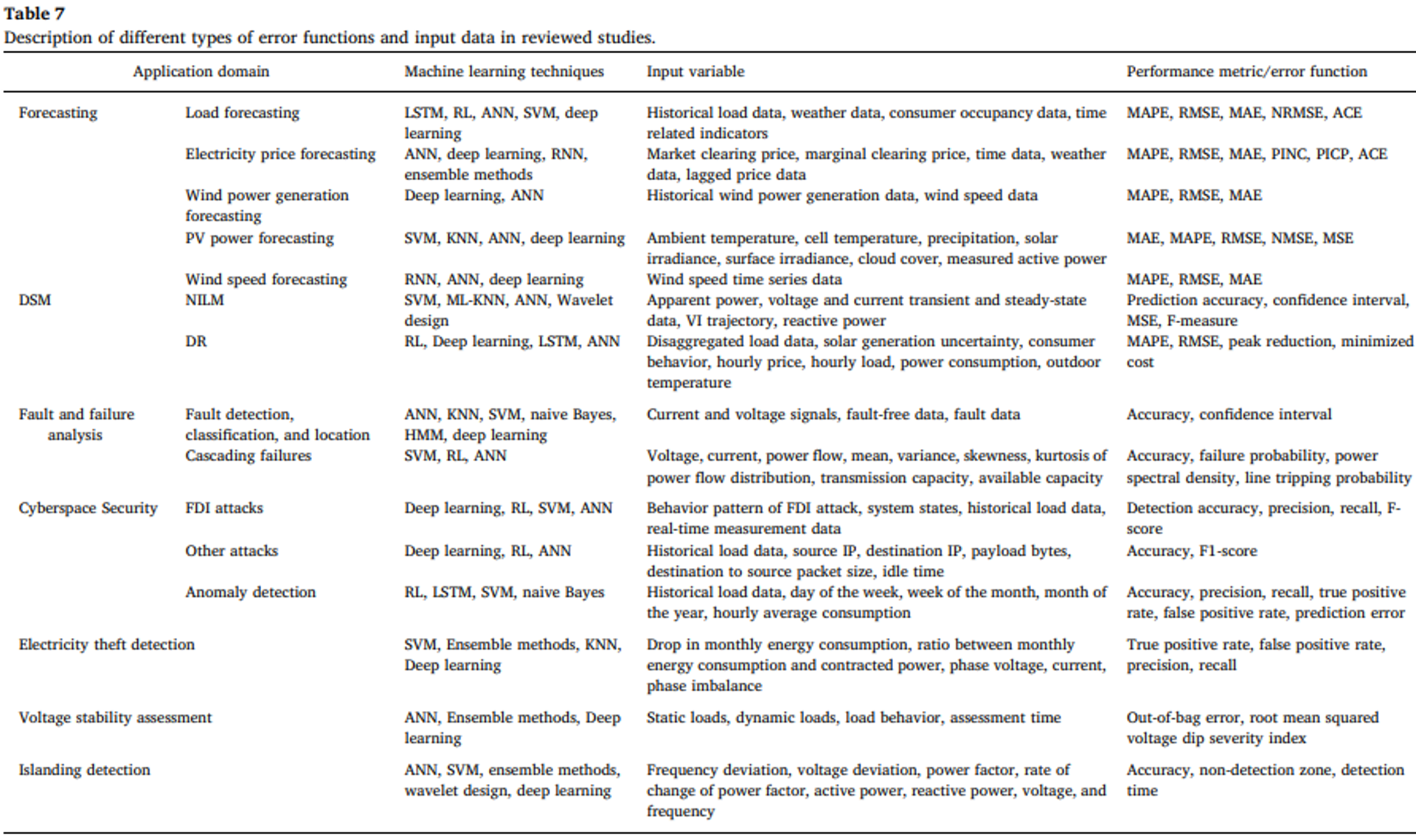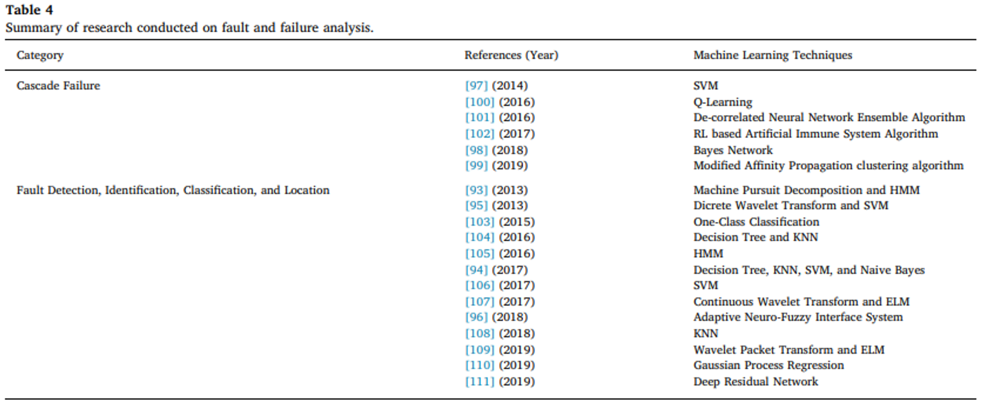 200개가 넘는 2014~2019 high impact journal들을 광범위하게 리뷰하고 보고하였다. 간단한 신경망부터 세련된 강화학습과 딥러닝 방법도 관측되었다. 더 구체적으로 55개가 machine learning based forecasting 문제, 23개가 machine learning based fault analysis, 42개가 machine leanring driven DSM 문제, 35개가 cyberspace security issues였다.
