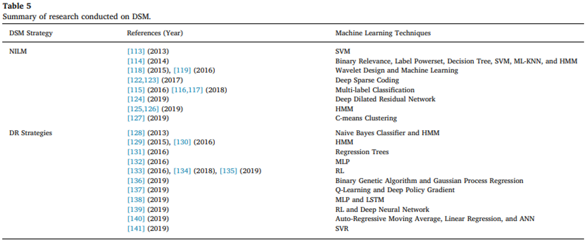 Load management / demand-side management(DSM) : DSM frameworks or demand response programs are mainly based on classification where machine learning tools such as SVM, MLP, and RNN have shown promising performance.