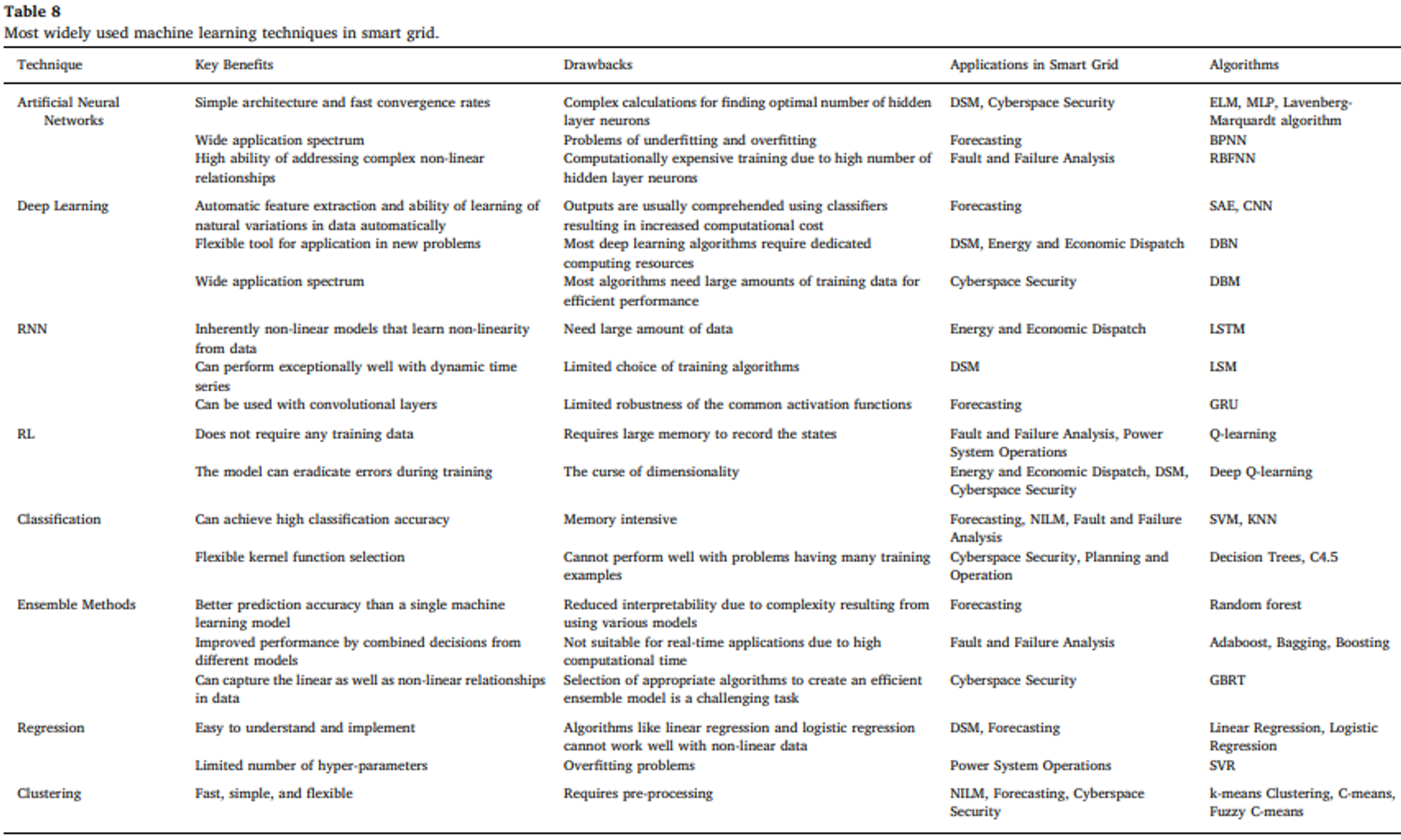 다양한 머신러닝 알고리즘(SVM, LSTM, DBN and CNN)이 많은 스마트 그리드 문제 해결에 사용되곤 한다.