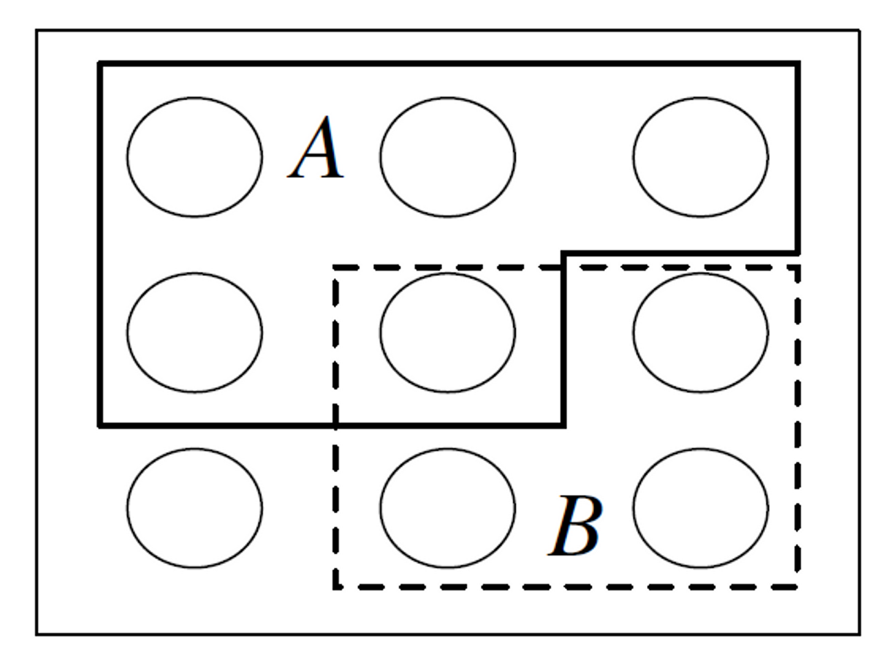 • 표본 공간은 finite, countably infinite, uncountably infinite 할 수 있다. 표본공간이 finite(유한)할 때, 우리는 Pebble World로 시각화 할 수 있으며 Figure 1.1과 같이 나타낼 수 있다. 각각의 pebble은 결과를 나타내며 event는 pebbles의 집합이다.